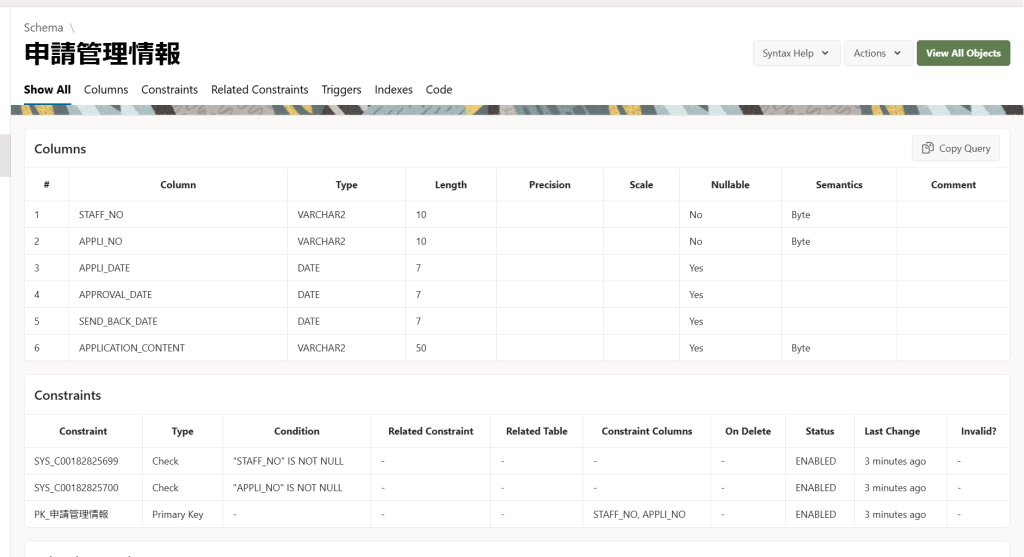create table 申請管理情報 (
