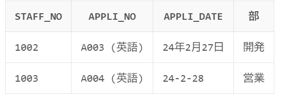 staff_no = '1001' の appli_date は 2024-02-25 と 2024-02-26。