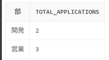 count(*) を使って、各部署ごとの申請件数を集計します。