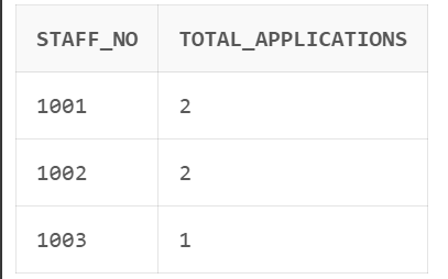count(*) を使って staff_no ごとに申請数を集計します。
