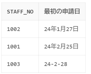 select STAFF_NO, min(APPLI_DATE) as 最初の申請日